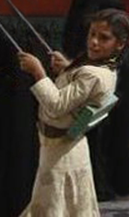 Her hands at the ready; to conduct this musical interlude.