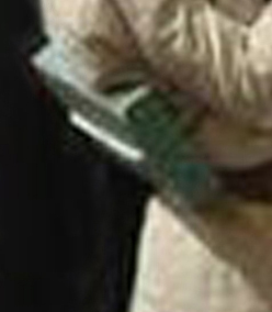 She wears a green metronome on her back.