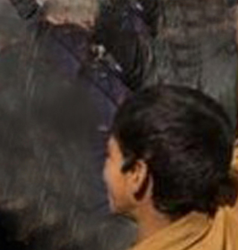 Her clothes have been sprayed with fire, white-phosporous style (militaries borrow these war crimes from each other).