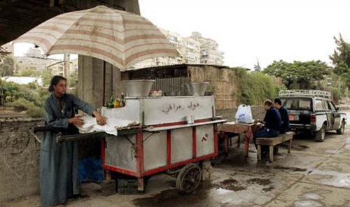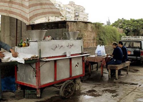Although I knew very little about selling ful on the street, I assembled two sandwiches of mashed bean and a little salt. I gave one to Wasfy and the other to the vendor whose cart I was borrowing.